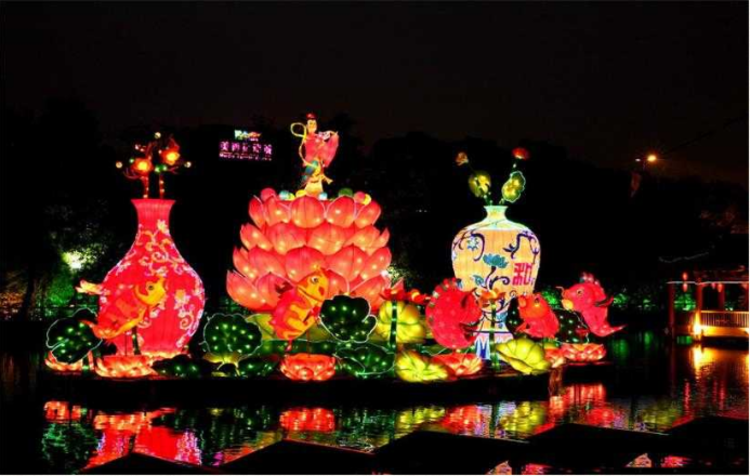 燈會的主要內(nèi)容是安放在園林美景之中的各式燈彩,按不同的主題或故事內(nèi)容分組陳設(shè),每組又由若干個不同的人物或景物組成,同時有無數(shù)的串燈、燈籠、牌坊燈、工藝燈、書畫燈、壁燈、臉譜燈、皮影燈、水底射燈、空中玫瑰、火樹銀花等作為襯托,形成了一個上下輝映、八方閃耀、色彩斑斕、眩人眼目的彩燈世界。