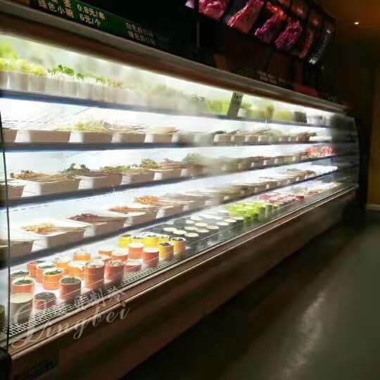 仟曦幕風柜定制配有夜間節(jié)能簾,夜晚和其它非營業(yè)時間使用。進一步的節(jié)約電能,降低使用成本。選擇件:幕簾、貨架照明、標簽架,玻璃端板和鏡子端板供選用。