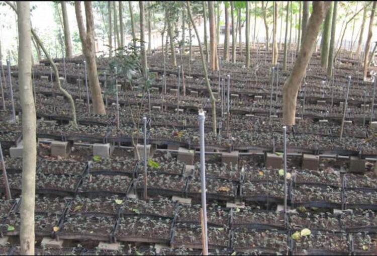利用天然林下環(huán)境條件,根據(jù)金線蓮的生長要求,選擇在交通相對便利、林木茂密土壤肥沃的山林、緩坡,四周用鋼絲網(wǎng)圍成,以防鳥、蛇、鼠等動物采食。樹間拉遮陽網(wǎng)透光度控制在30%左右,光照強度以3000-4000lux為宜,即“三分陽七分陰”為度。